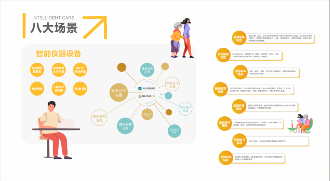 还原适老化智能家居场景,集成跌倒监测、体征检测、一键呼救系统,展现安全便捷的居家养老方案。
