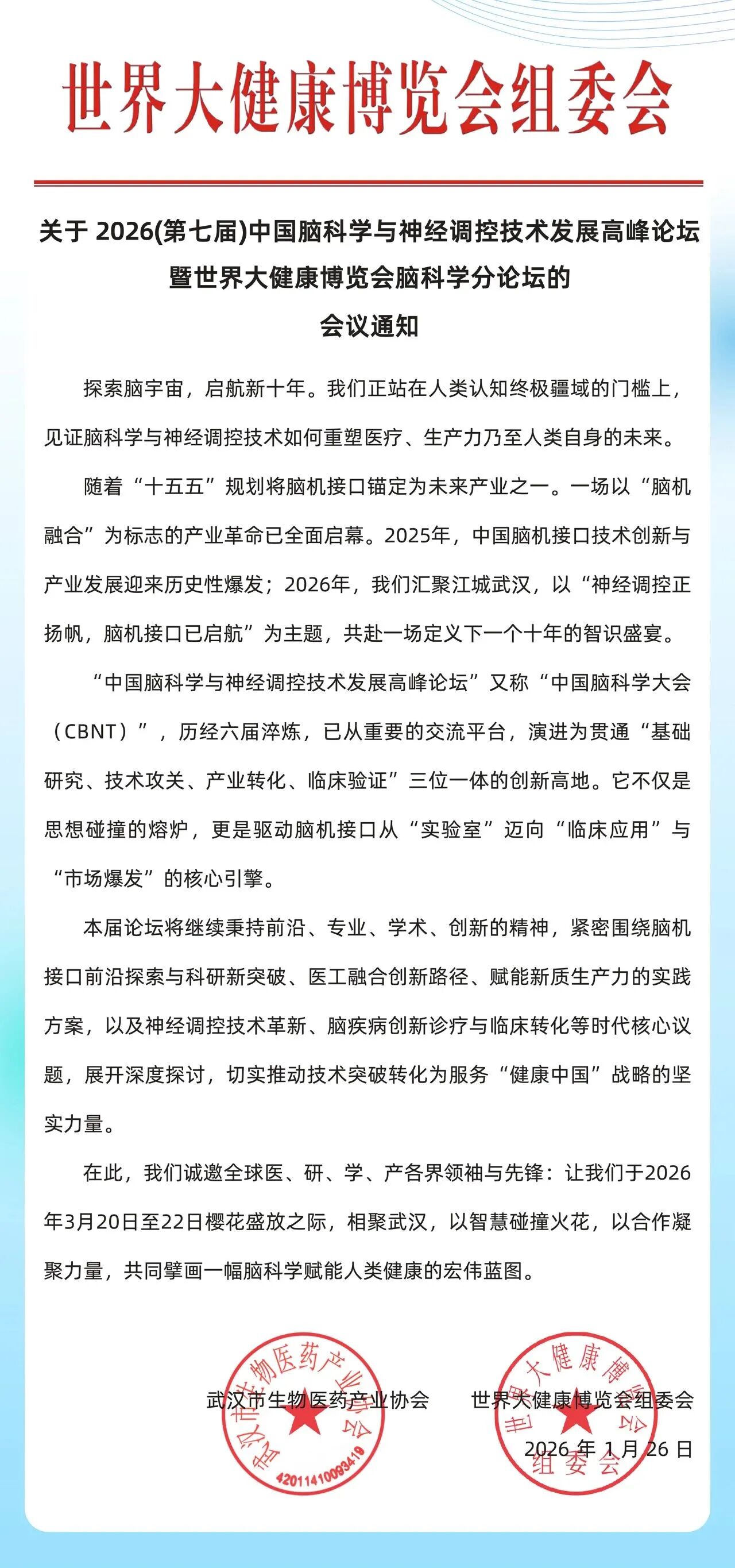 2026(第七届)中国脑科学与神经调控技术发展高峰论坛