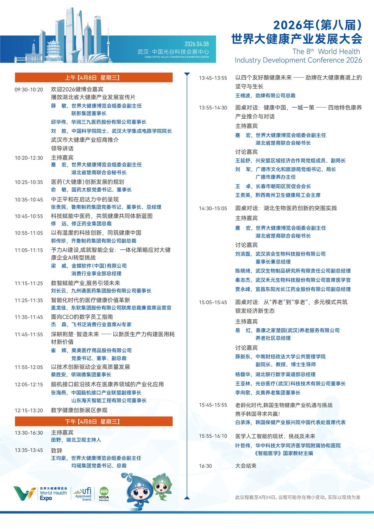感谢您报名参加2026(第八届)世界大健康产业发展大会。为确保您顺利参会、收获满满,我们特别整理了这份参会指南,请您仔细阅读并收藏。