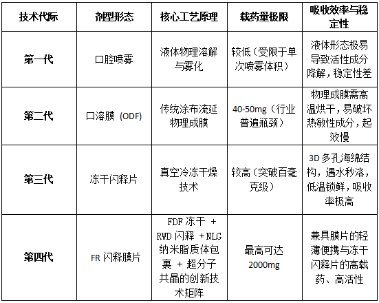 常州伟博海泰对于口腔黏膜吸收制剂产品形态的升级,本质上是一场围绕“更快释放、更好口感、更高便携性、更稳定大剂量”的持续技术攻坚。为了打破行业长期存在的物理瓶颈,伟博海泰经历了如下四个阶段的技术跨越,每一代产品的更迭都代表了对行业痛点的精准狙击。